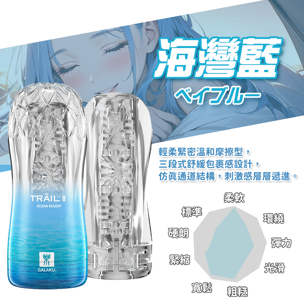 GALAKU-TRAIL II 立體通道自慰訓練杯-海灣藍 溫和摩擦型
