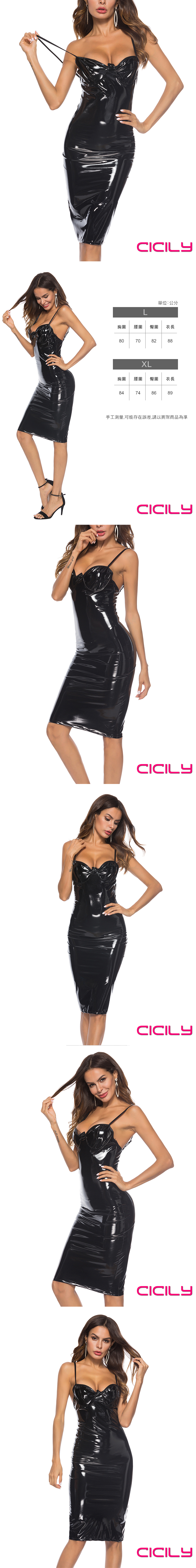 .主商品:CICILY 獸性女王 性感吊帶連衣裙鏡面 漆皮膠衣 黑 XL
