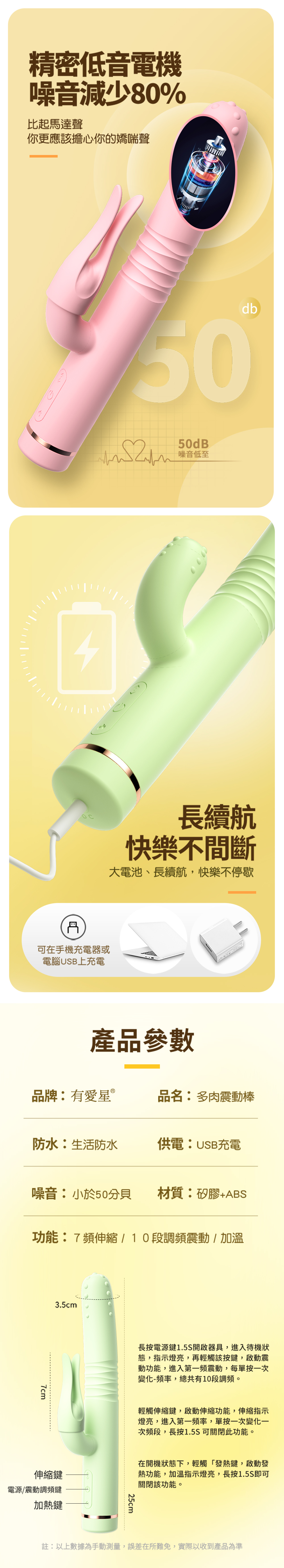 功能:7頻伸縮/10段調頻震動/加溫