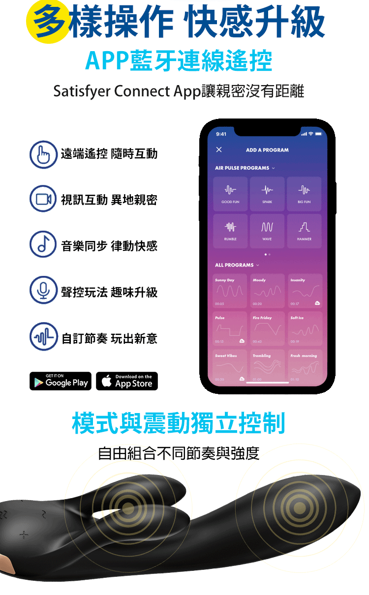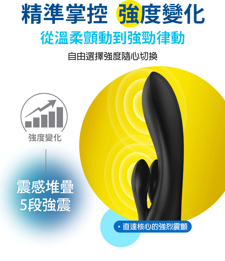 從溫柔輕撫到強烈衝擊,激情律動,隨心調整。