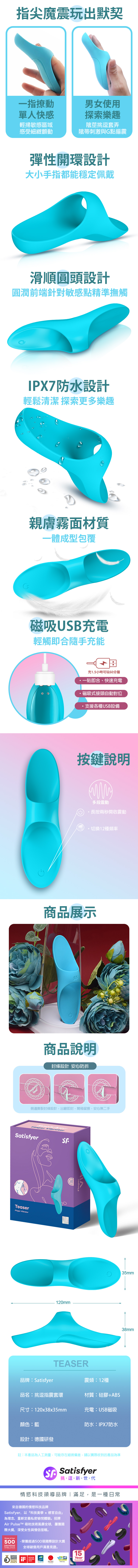 品名:Satisfyer|Teaser|挑逗 指震套環震動器 藍